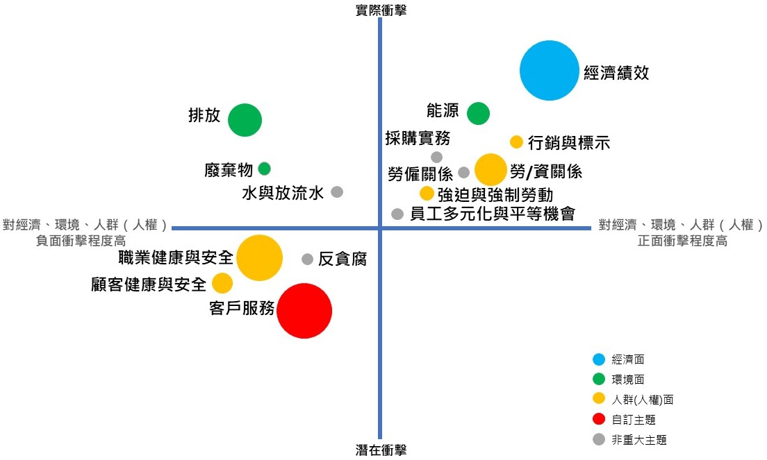 | ●自訂主題 | 客戶服務 | 公司經營首重誠信,以完善的服務,贏得客戶滿意。 | 潛在負面衝擊 | ● | ○ |