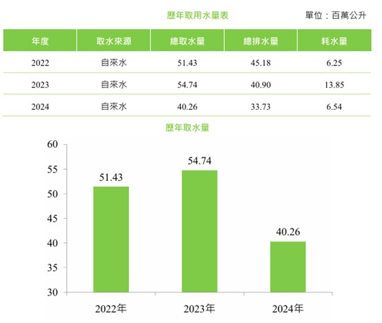 水资源管理 瑞智公司所在地為經濟部觀音產業園區,該區域所供應工業用水源為自來水,且因該區嚴禁取用地下水源,故供水唯一選擇為自來水。自設廠時,即以節省能源為考量,為創造更佳利潤、節能減碳及愛護環境資源為生產目標,於製造生產線上之製程用水均採取最節省之設施與設備,加上不斷創新改善用水措施,盡企業本分、節能減碳、愛護地球,為後代子孫留下更多能資源,截至目前尚未違反環境相關法規之情事。